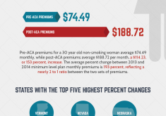 Pre-Affordable Care Act premiums for a 30 year old non-smoking woman average $74.49 monthly, while post-ACA premiums average $188.72 per…