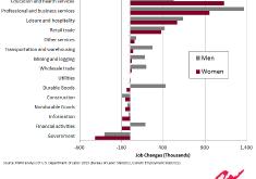 Women's and Men's Job Gains in the Recovery by Industry »