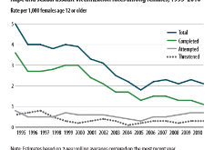 Sexual violence includes either completed, attempted, or threatened rape or sexual assault. These rates are declining for women aged 12…