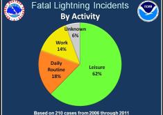 Of the 210 reported fatal lightning incidents in the U.S. from 2006 to 2011, 81% of the victims were male…