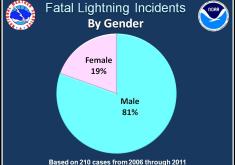 Of the 210 reported fatal lightning incidents in the U.S. from 2006 to 2011, 81% of the victims were male…