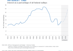 There are two reasons that interest rates represents a growing slice of the federal budget: (1) As long as the…