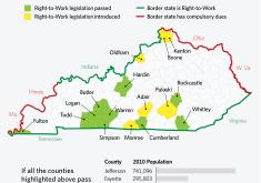 Kentucky does not have a state-level right-to-work law, but since December, 10 Kentucky counties have enacted their own local legislation…