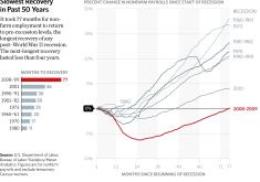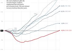 Six-and-a-half years after the recession began, nonfarm employment has returned to pre-recession levels. The next-slowest recovery took less than four…