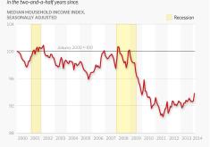 Median household income plummeted from 2009 to 2011 and has grown only modestly in the two-and-a-half years since.