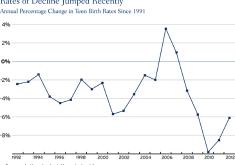 Teen births fell at a rate of 2.5 percent per year between 1991 and 2008; that rate tripled to 7.5…