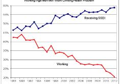 Data compiled from the Current Population Survey on men aged 20 to 59 with a work-limiting health problem shows that…