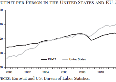 Output per person is now higher in the United States than in the European Union. Productivity was about the same…
