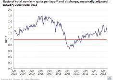 The ratio of quits per layoffs and discharges increased to 1.41 in June 2013, up from the lowest ratio of…