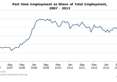 Since peaking a few months after the start of the Recession, the percentage of the workforce employed part-time has been…