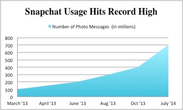 This chart outlines the number of snapchats sent per day during the following months between users of the application.