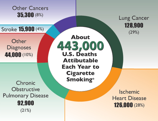 Above is a graphic that reveals the causes of death for the nearly half a million smokers that will die this year.