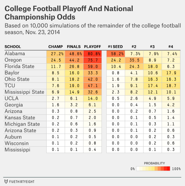 A lot of people are getting upset with the way Florida State seems to be sliding through this season, but I think the big story for the playoffs is the battle between the two Big 12 teams Baylor and TCU. Let's not forget about teams like Mississippi State, UCLA, and Georgia who are fighting for that No. 4 spot as well. This might be a photo finish.