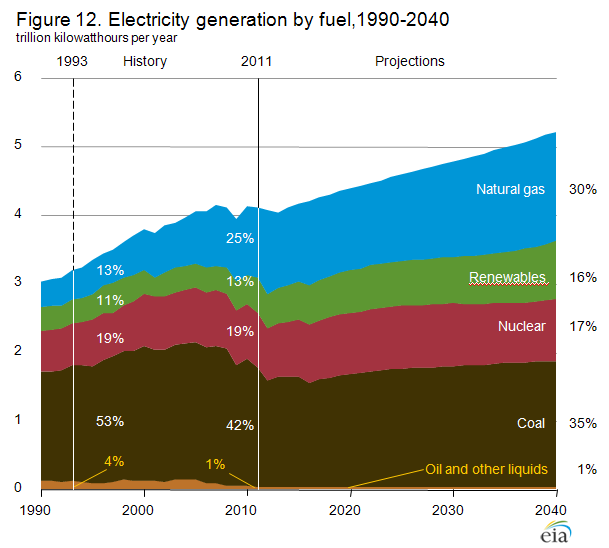 It is predicted that nuclear power will account for 17% of electricity generation in 2040. Coal will account for 35% of electricity generation.