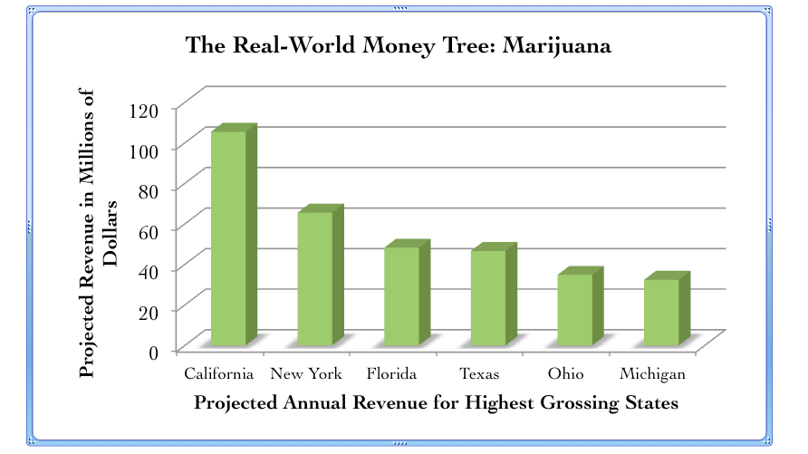 Total taxpayer money from marijuana legalization-- revenue saved from regulation and incarceration, combined with revenue increase from marijuana taxation-- is estimated to bring in an additional $13.7 billion to the national government, annually. These figures do not include additional benefits a legal market creates through related businesses, such as paraphernalia shops, nor the likely increase in marijuana's use with legalization.