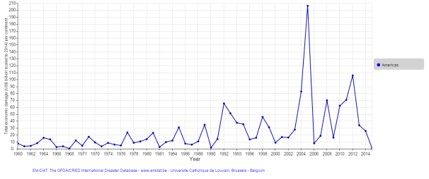 The damage caused by natural disasters has been increasing. This is why the actuarial profession has increase greatly the last decade: in a constant uncertain world, we need actuaries to evaluate risk so the country will not be affected as much by natural disasters.