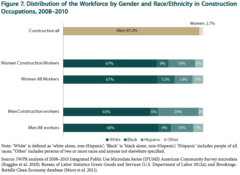 While women are nearly half the workforce overall they hold less than 3% of construction jobs.