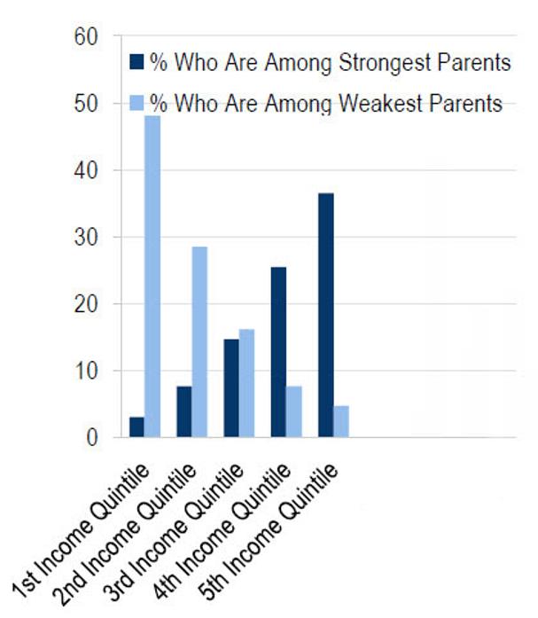 The quality of U.S. parenting, as measured on the HOME scale, strongly varies by income. In other words, the skills transmitted from parents to children profoundly affects children's thriving and future income.