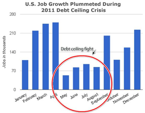 Many Republicans think a fight over raising the debt limit is where they can win a delay of Obamacare. What seems unimportant to them is that their fighting over the debt limit (something never done before this last Congress) dramatically reduces job growth. Perhaps they just don't care about jobs.
