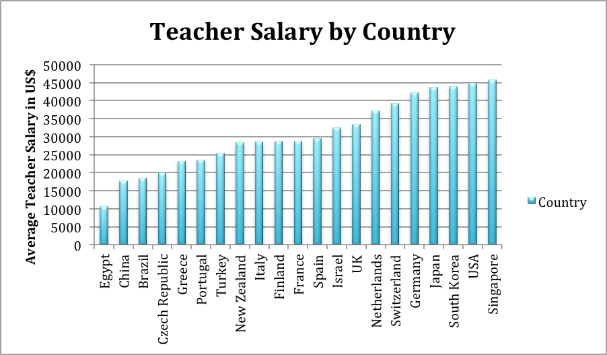 Average salaries for teachers varies greatly around the world. All salaries are shown in US dollars. See also: savvyroo.com/chart-3427438858…