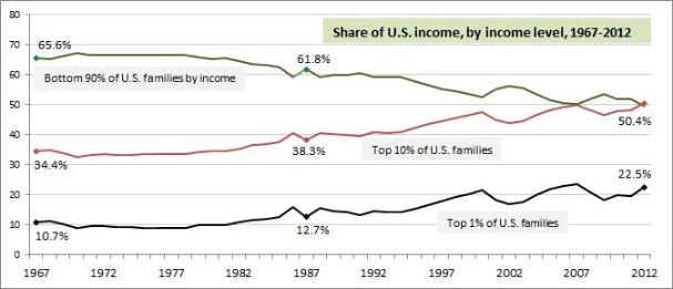 Last year, for the first time in modern times, America's top 10 percent collected over half the nation's income, as President Obama noted December 4 in an address that assailed the nation's current inequality. The main driver of this redistribution upwards: the rising income share of America's top 1 percent.