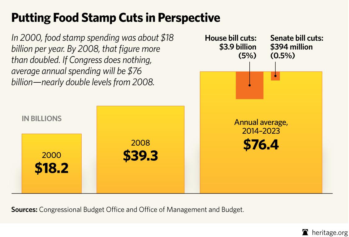 In 2000, food stamp spending was about $18 billion per year. By 2008, that figure more than doubled. If Congress does nothing, average annual spending will be $76 billion—nearly double levels from 2008.