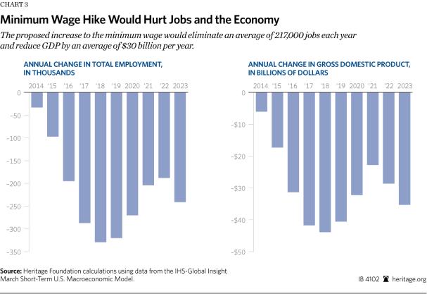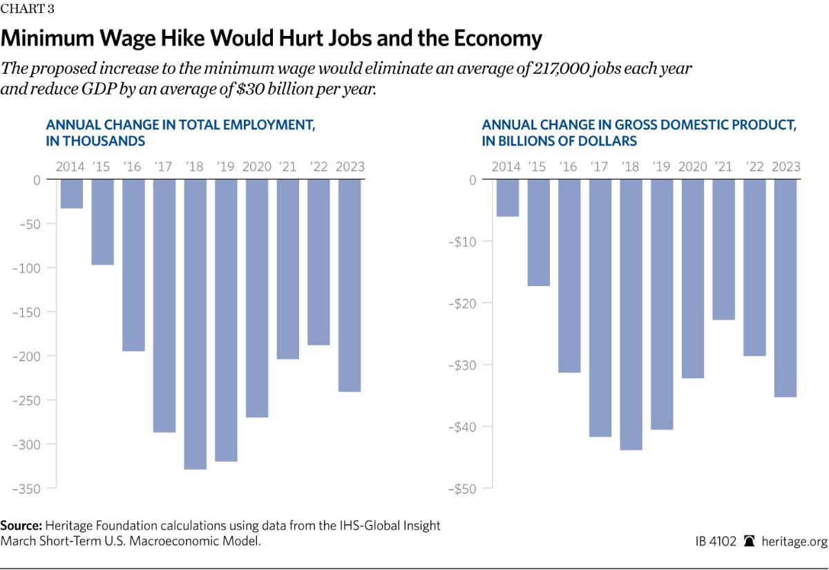 The proposed increase to the minimum wage would eliminate an average of 217,000 jobs each year and reduce GDP by an average of $30 billion per year.