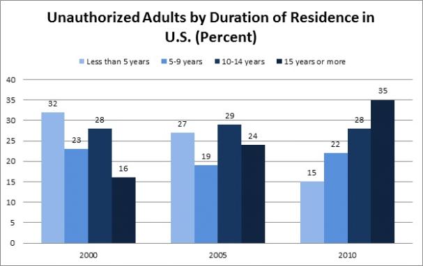 Immigration restrictions known as the 3/10 bars have done more to lock unauthorized immigrants in the U.S. than to keep them out. They raised the cost of leaving the U.S. and, predictably, more undocumented immigrants stayed longer and thus increased the size of the unauthorized immigrant population. Read more about the 3/10 bars and a possible keyhole solution: bit.ly/1tDatjR