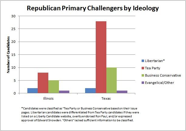 The Tea Party is the dominant source of challenges in Republican primaries.