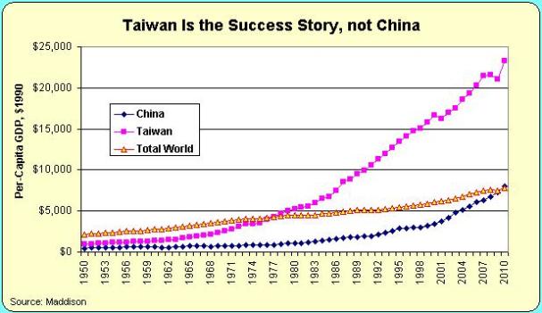 There have been a bunch of misleading stories about China “overtaking” the United States in economic output. But GDP is not the only number that matters—we have to look at per capita GDP. By this measure, China's neighbor, Taiwan, is far above the world average while China has only recently reached that level. What's Taiwan's secret? Learn more: bit.ly/SuAx2y