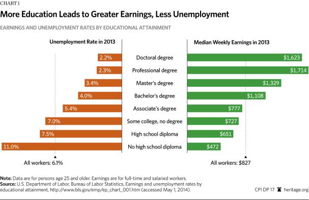 Those with a college degree earn about twice as much as those with only a high school diploma.