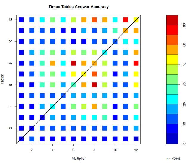 Children have the most difficulty learning the multiplication factor for six, seven, and eight. Smaller number and round numbers like five and ten are easier.