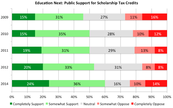 Over the last five years, the public has increasingly favored the idea of scholarship tax credits, a program that would increase educational opportunities by affording students a choice in their schooling. By providing incentives for students to choose from a variety of quality private and public school options, the tax credits provide a viable means of improving American education.